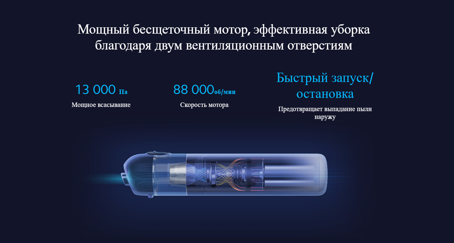 | Особенности | многофункциональные насадки, высокоэффективный бесщеточный мотор и прямая конструкция с двумя вентиляционными отверстиями снижают потери энергии и повышают эффективность очистки |
