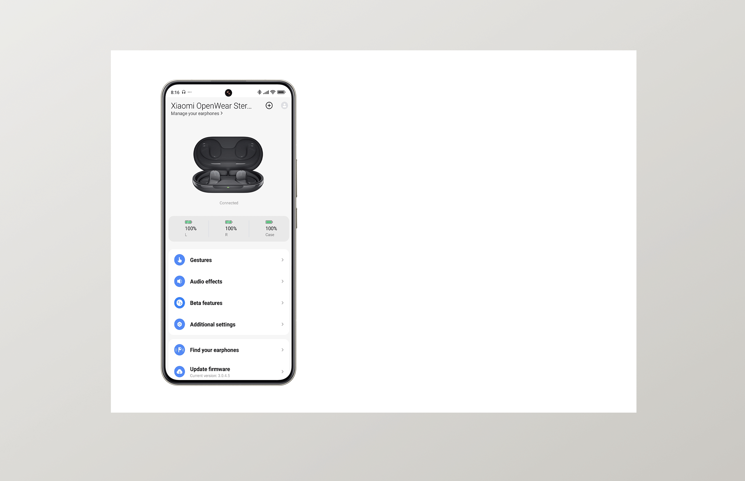 Загрузите приложение Xiaomi Earbuds, чтобы настроить сенсорное управление для вашего Xiaomi OpenWear Stereo. Все под контролем — настройте параметры для оптимального звучания и устанавливайте онлайн-обновления прошивки.